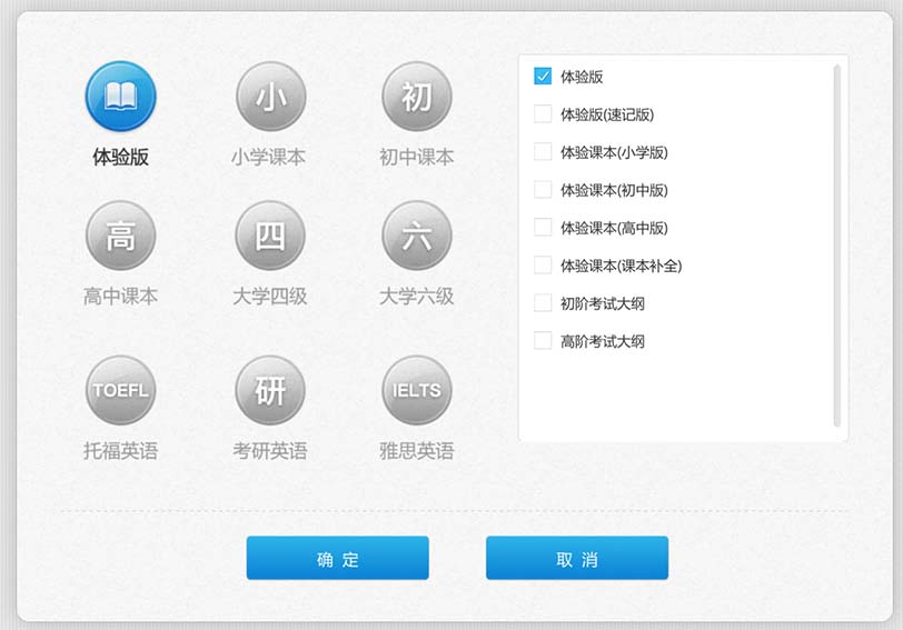 1) 免费版:任何一位学习者都可以下载并体验学习免费版课程,我们为用户安排了八套免费课本,供用户体验,基本涵盖了从小学到大学的单词范围。