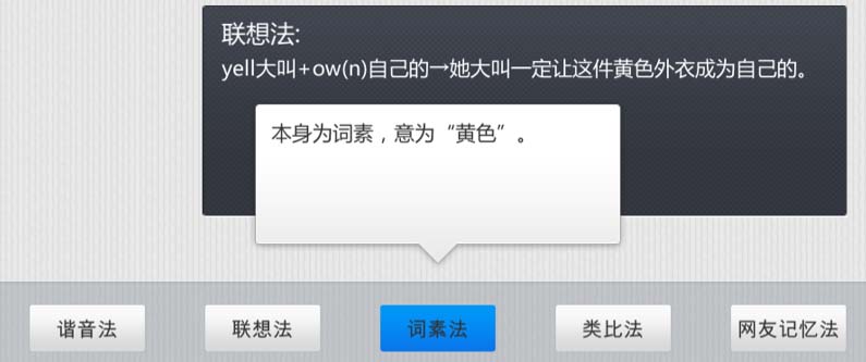 Memoryer提供了齐备、丰富的英语单词编码,将全部英语单词编码按照语义、语音、视觉、类比分为4类约5万种助记方法,使用者可以根据个人的背景经验、记忆策略、学习阶段的不同而选择不同的助记方法。