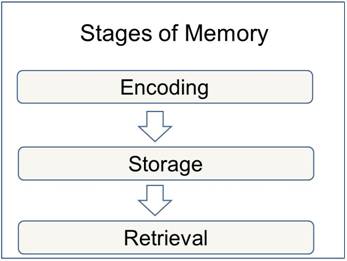 记忆的加工过程分成编码-存储-提取三个阶段。