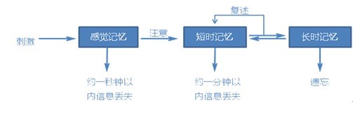 3、长时记忆是指保持时间在一分钟以上的信息存储。短时记忆通过复述的方式转换为长时记忆。