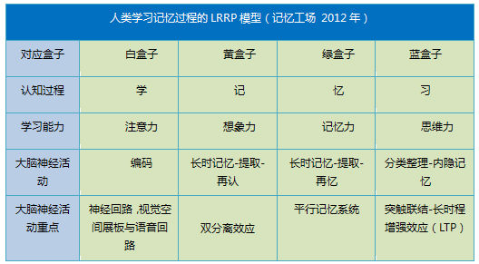 依据上述人类学习记忆的LRRP认知模式,学习记忆的第一个过程是学—记—忆—习,对应学习能力是注意力—想象力—记忆力—思维力。